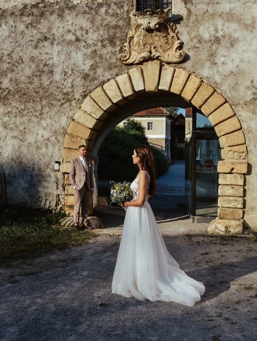 Manjša poroka na lokaciji, prepleteni z zgodovino in vinorodnimi okoliši v Lipnici v štajerskem delu Avstrije...